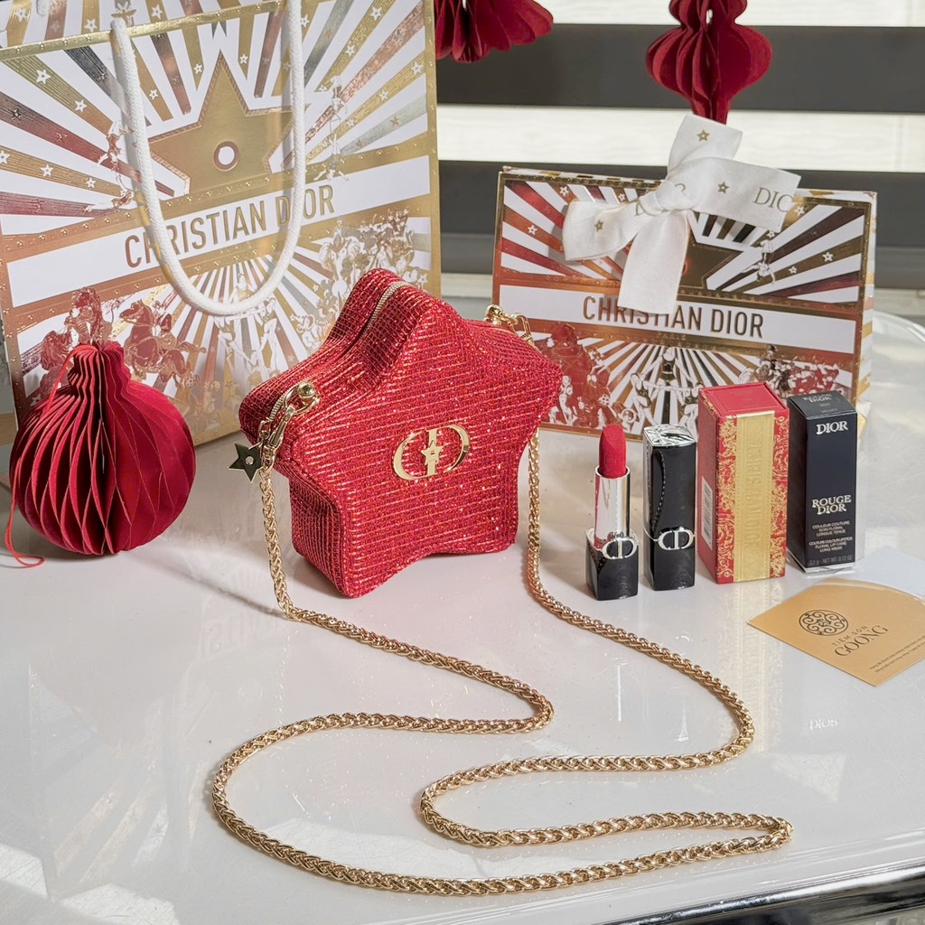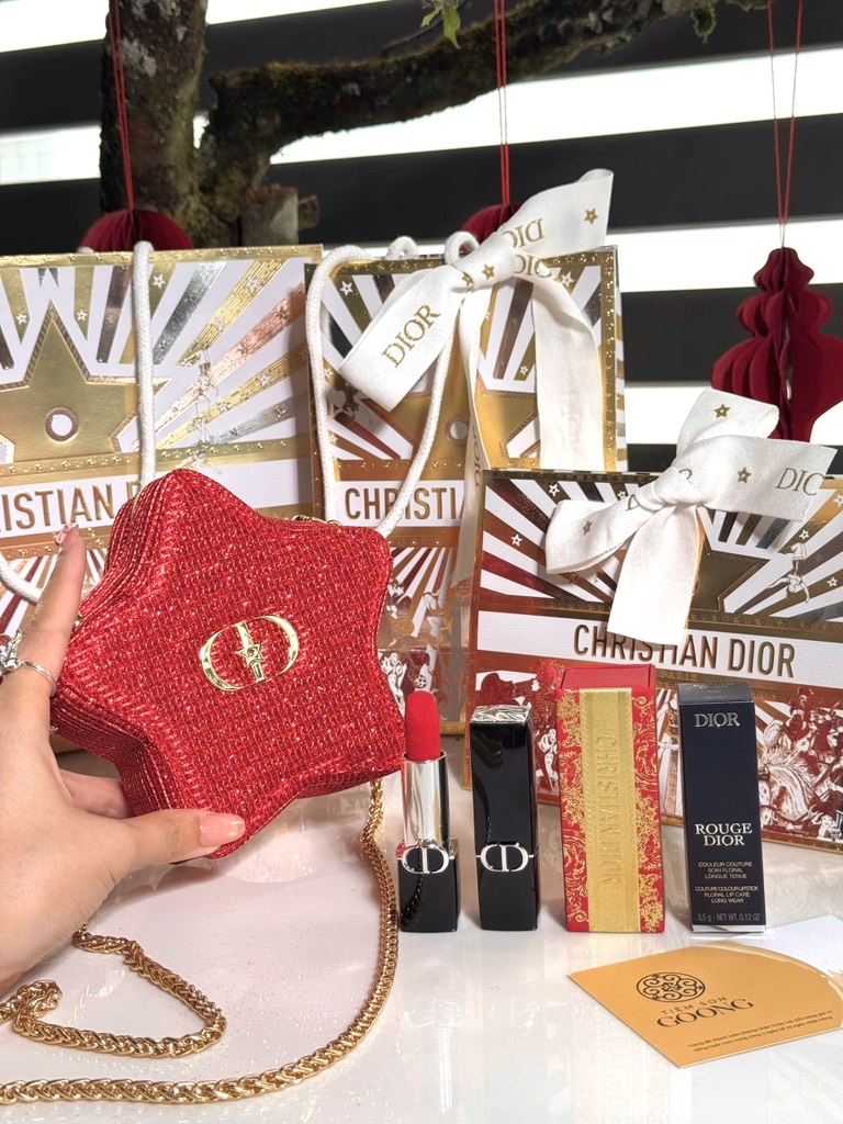 Set Dior túi nhung đỏ Tết 2026