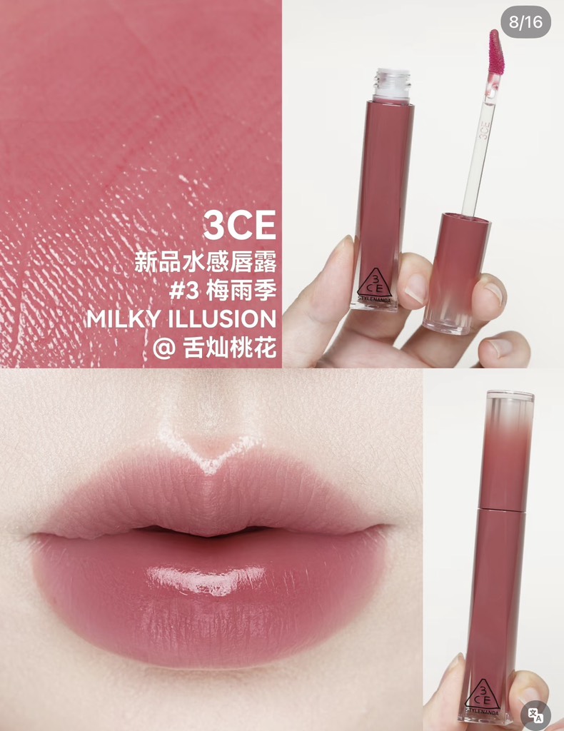 Son môi 3CE Drop Glow Gel (son gel bóng)